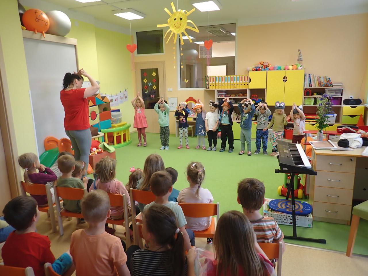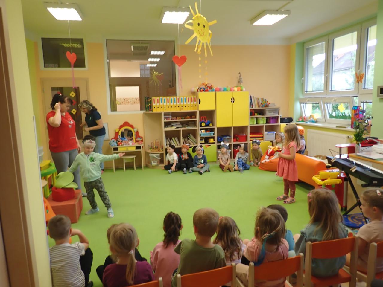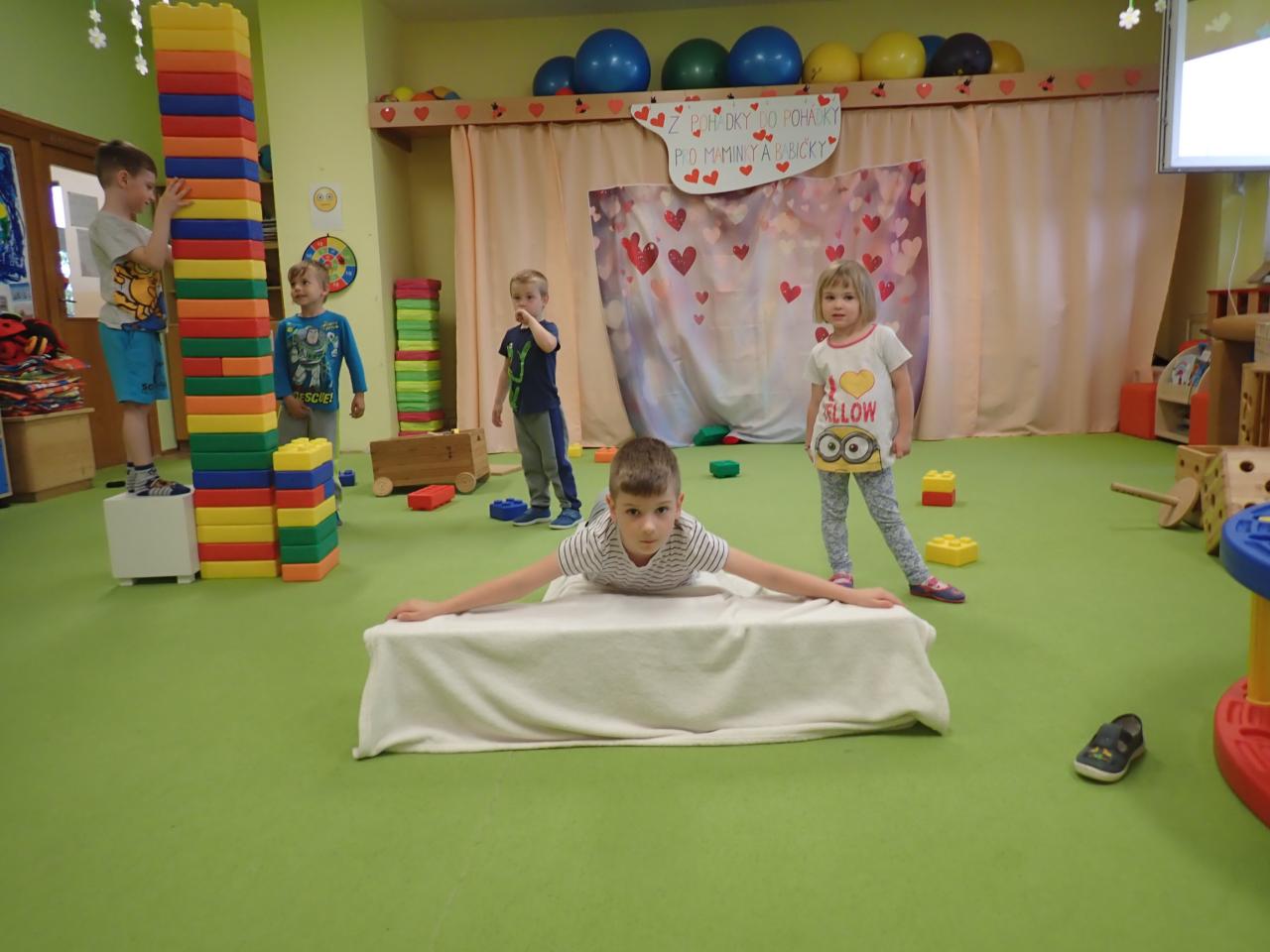 V měsíci květnu rozvíjíme osobnost dítěte,možnost seberealizace,co největší rozvinutí a uplatnění jeho ,,já".Klademe důraz na kamarádské vztahy,společenské chování,ochota pomáhat,nebát se požádat o pomoc a rozvíjení samostatnosti při všech činnostech.